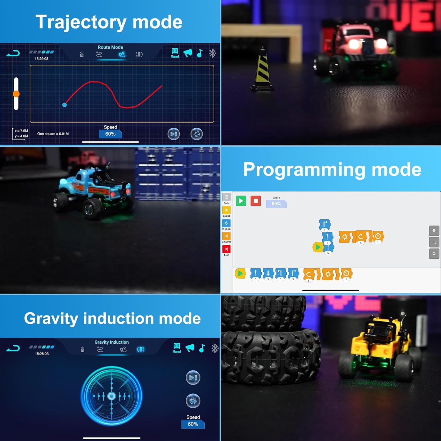 Three speed adjustment: Supports three speed adjustments of 1.8KM/H, 2.8KM/H, and 3.8KM/H. Novices can practice at low speeds and challenge themselves with high-speed off-road driving after becoming proficient. Different speeds are adapted to different gameplay, and the driving pleasure is upgraded layer by layer.