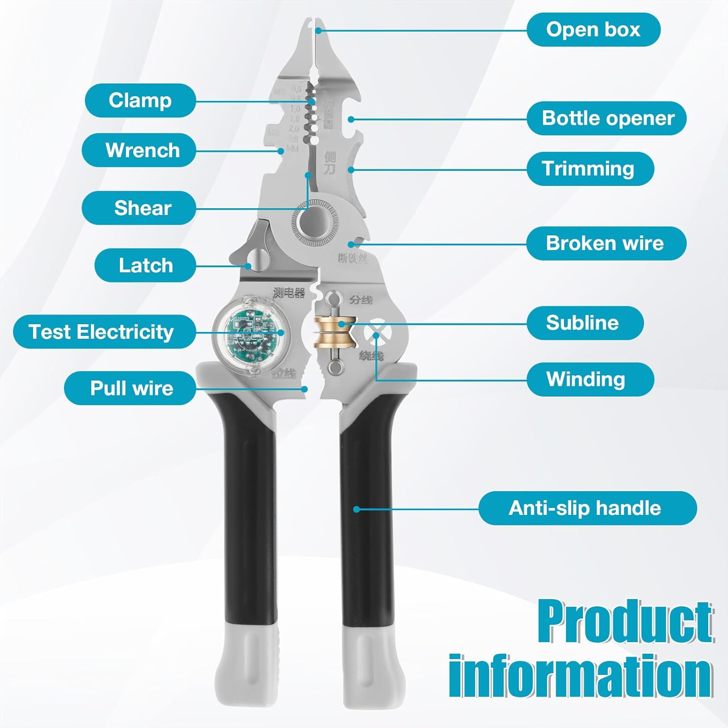 Versatile Multi Tool: This multifunctional wire stripper combines wire stripping, crimping, winding, cutting, trimming, shearing, splitting, clamping, wrench functions, and slots for separating, twisting, and pulling. It's great for electrical installations, automotive wiring, or home repairs