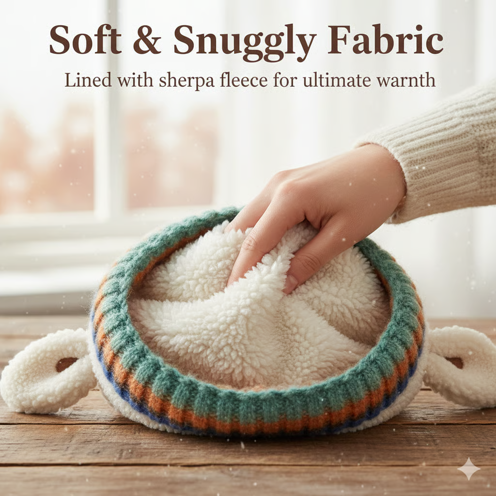 Lined with sherpa fleece and knitted outer texture, giving you the best of warmth and softness.