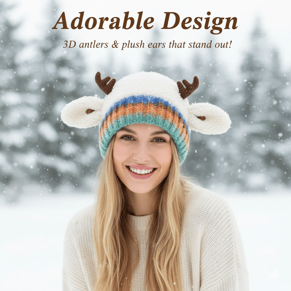 💫Bring the magic of winter to your wardrobe with our Deer Plush Hat—Perfect for chilly walks, Christmas photos, ski trips, or just staying cute indoors!✨