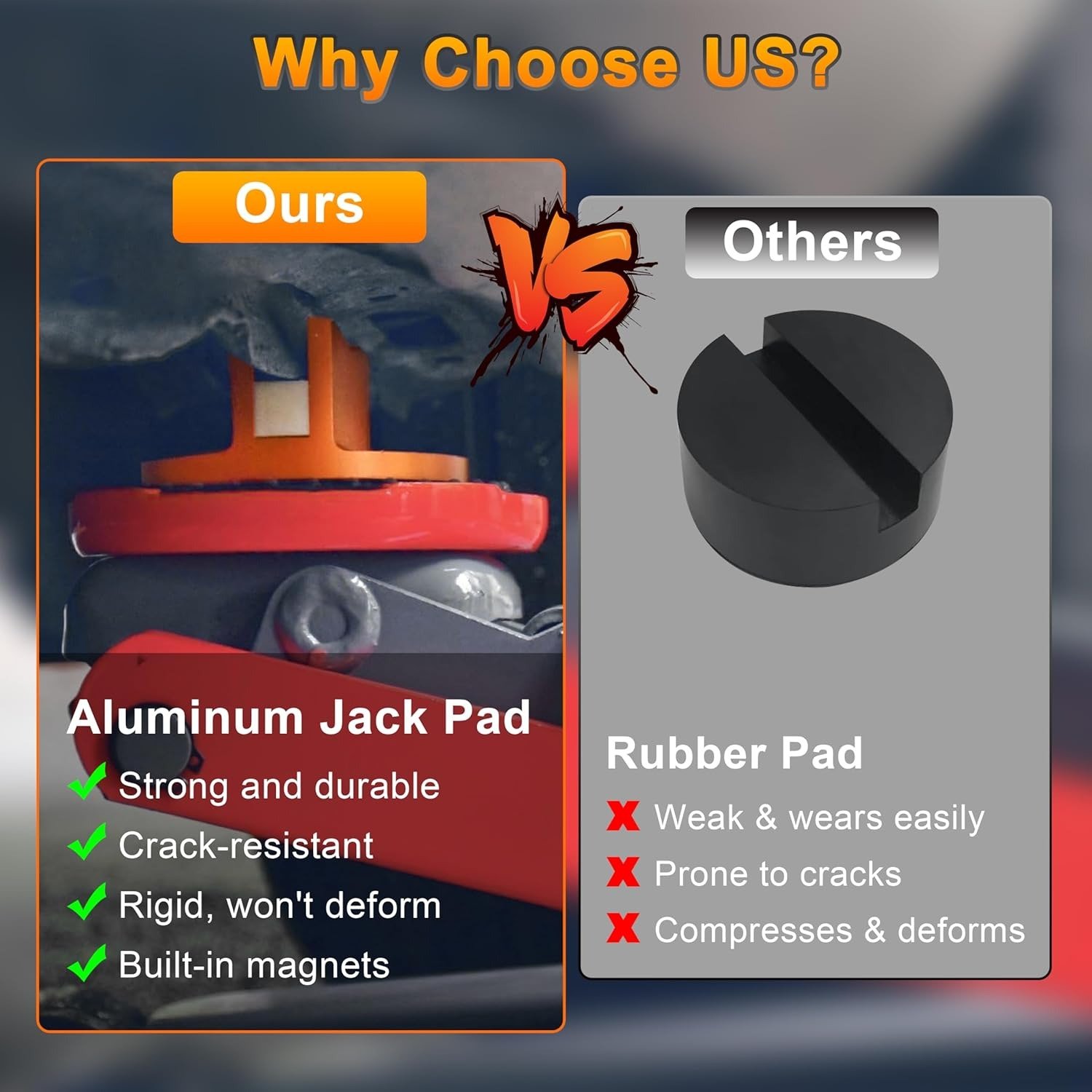 Equipped with two high-strength magnets, the pad stays firmly in place on the jack point, preventing slips or movement while lifting. This ensures a safe, stable lift for both beginners and professionals.